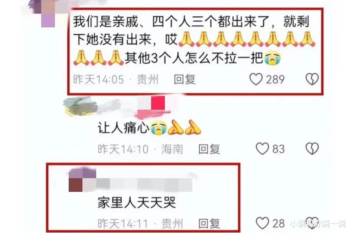 事后,疑似欧克爱家人表示:怪这三个人,没有拉欧克爱一把。家人一直没有接受这个事实,天天哭。