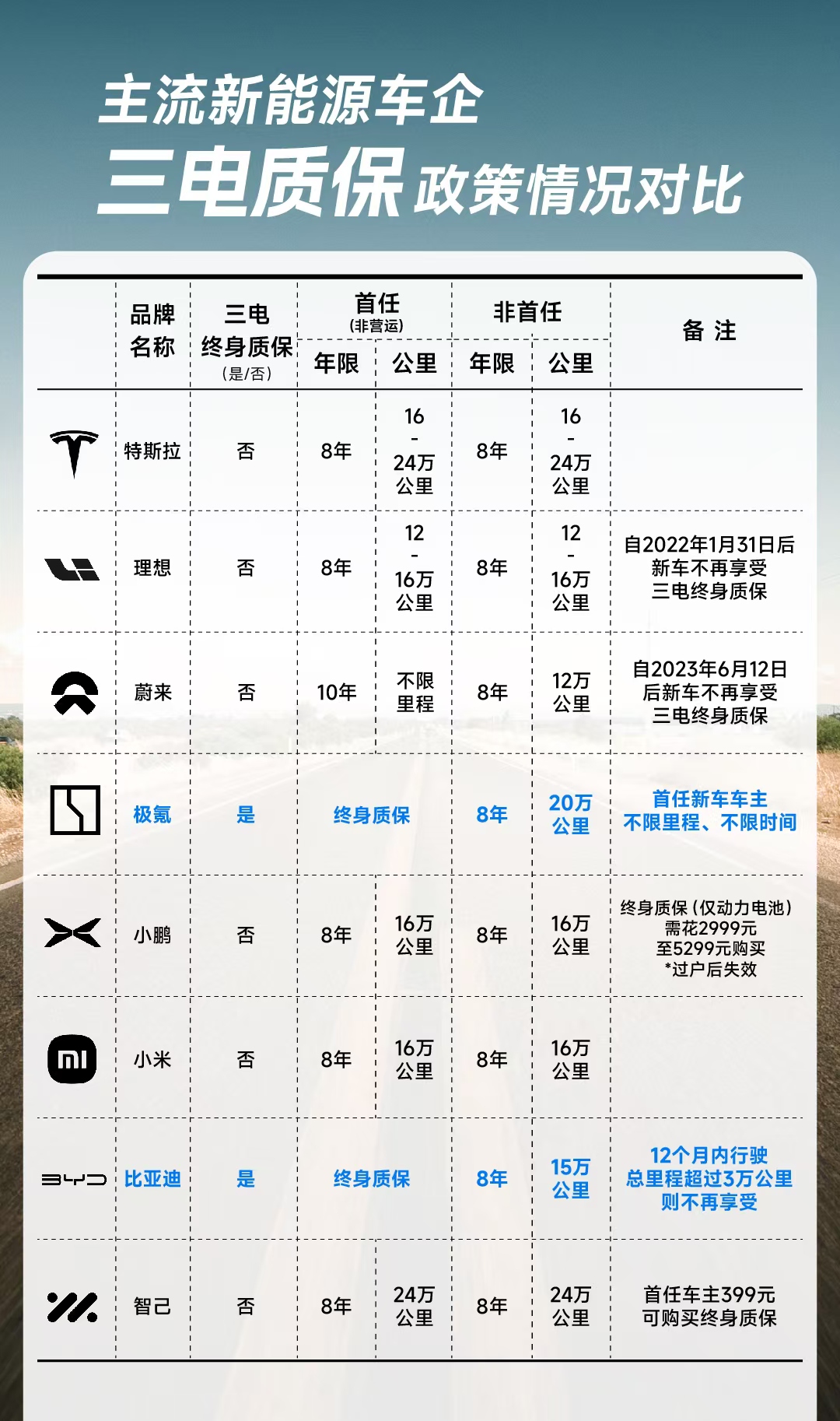譬如极氪的三电质保条款,即便对于不少车企来说,更多是为了向消费者展示品牌在技术、品质等方面的信心,意在获得更多的关注与销量,却并从中打造出差异化的服务,但极氪在这一方面的标准远在其他品牌之上,且不仅首任车主可享三电终身质保不限年限、不限行驶里程,二手车主也有8年20万公里的三电质保权益,堪称行业顶格标准。