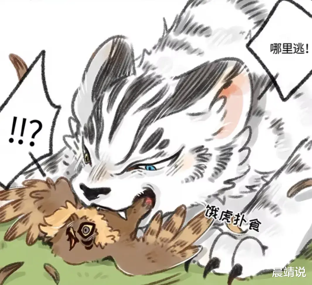 大概是动物相生相克的天性,虽然不知道是不是有危险,大鹏还是决定要先跑。但是已经来不及了,还没等大鹏展翅飞翔,就被身后的战虎一个饿虎扑食,牢牢的被战虎擒获了。