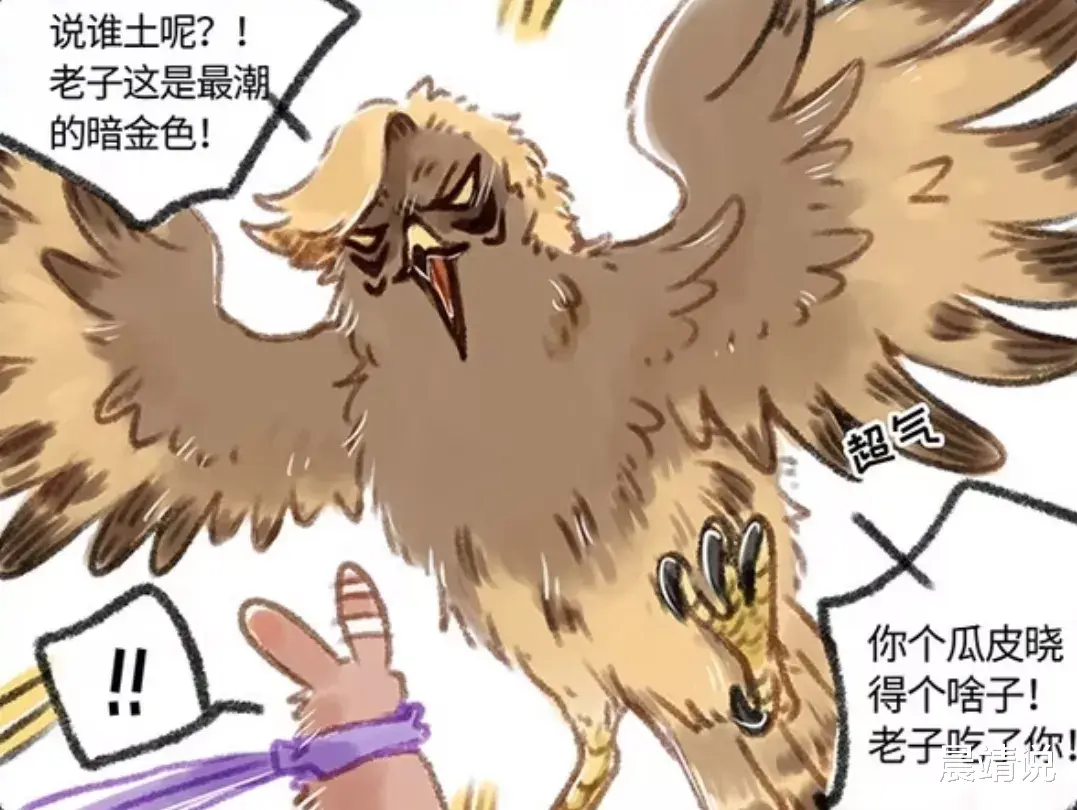 兔爷的一句土麻雀,踩中了金翅大鹏的逆鳞。只见金翅大鹏直接暴起变回了原形,气势汹汹的质问兔爷,说谁土呢?!老子这是最潮的暗金色!你个瓜皮晓得个啥子!老子吃了你。