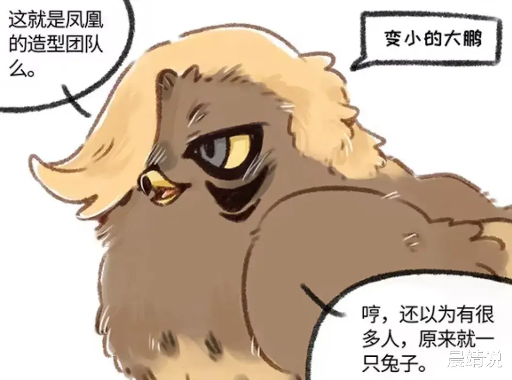 金翅大鹏为了方便跟踪,把自己变得如同麻雀大小。现在确实也是探知了,原来这就是凤凰的造型团队。哼,还以为有很多人,原来就只有一只兔子。