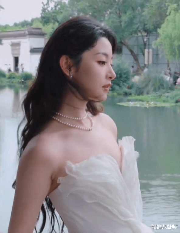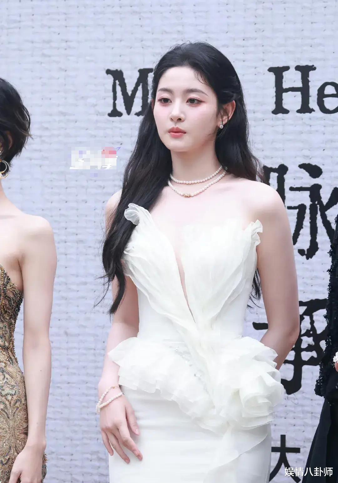 看下赵晴的造型妆容吧,身穿简单的白色礼服裙,脖子上还佩戴了一串珍珠项链,怎么说呢,赵晴其实还是蛮有气场的,就是脸盘的确大了一些,再加上骨架好像也比一般女性大,这就显得赵晴会更加的大只一些。