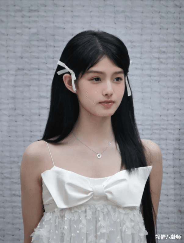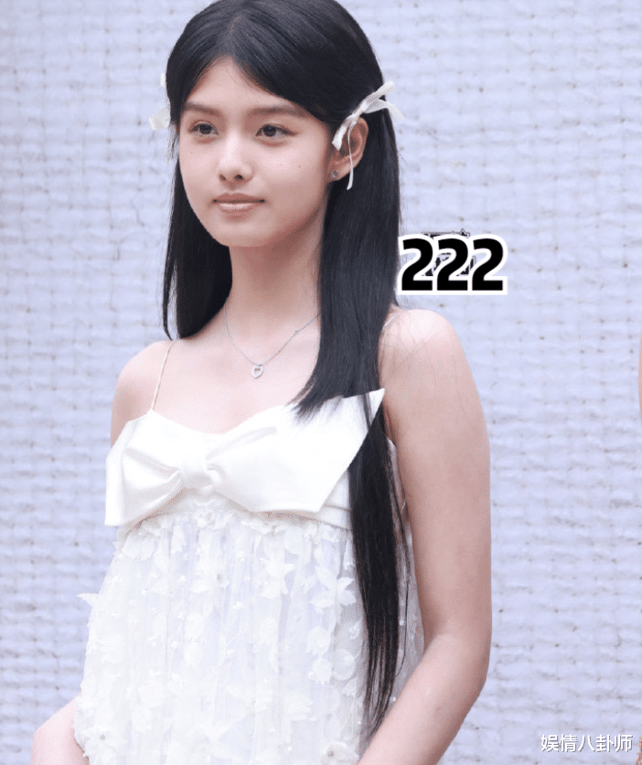 当日艾米穿了一条和睡裙差不多的连衣裙,头发上还扎着蝴蝶结,确实邻家妹妹的既视感。其实这个造型还是蛮适合艾米目前的年龄的,只能说造型师还是可以的,没有把艾米打扮成辣眼睛的风格。
