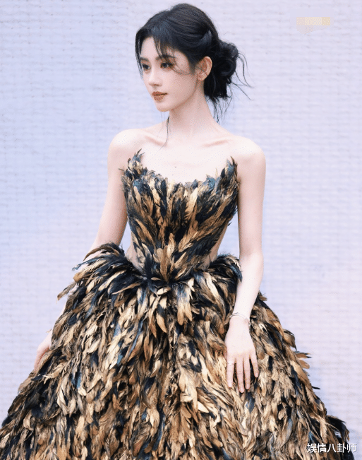 鞠婧祎身穿的是黑金色羽毛拼接的礼服,那裙摆大的似乎能将装下三个鞠婧祎了,据悉这代表的是凤凰涅槃,浴血重生,显然预示着鞠婧祎和前公司解约后的自己将会浴血重生了。