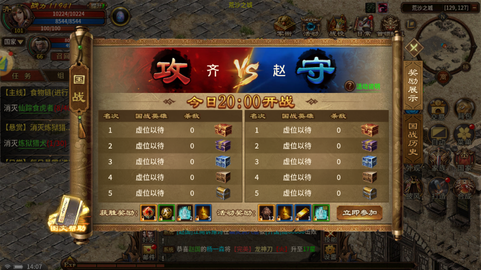 但是成为国王就要肩负起作为一国之主的责任,每周的周三、周六晚上20点会开启国战,开战的两国会分别作为攻守两方进行决战,获胜的国家被称为强国,获得强国buff加成,而战败国视为弱国,也会获得少量buff加成。