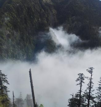 当地彝胞说,进沟不能大声喧哗,不然会惊动山神,山神一生气,就会吐出青雾,把人畜卷走。