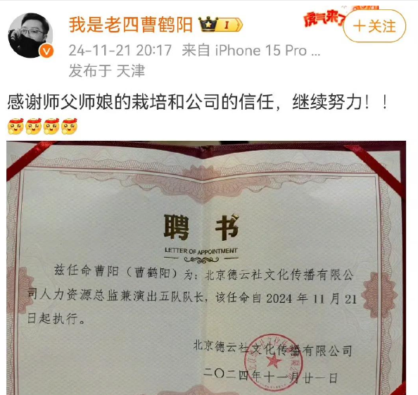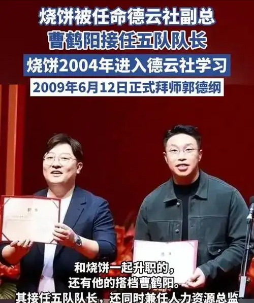 烧饼上位就不多说什么了,毕竟人家从13岁就跟着郭德纲,就算升迁也无可厚非,可曹鹤阳这明摆着就是靠着巴结烧饼才上了位。