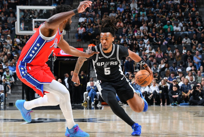 本赛季进入收官阶段,东部局势远比西部更复杂,从第六名猛龙到第十名热火,前后只有2个胜场差距,但注定有球队可以直通季后赛,有球队只剩一条命。而在这其中,76人的情况下不太妙,最近连续输给活塞和马刺。输给活塞一战,恩比德背靠背负荷管理,最近一场打马刺的比赛,当文班亚马在场时,恩比德没占到任何便宜,但文班亚马受伤离场后,恩比德爆发了,全场19中8,但拿到19次罚球,狂揽34分12篮板4盖帽,以及至少7次用76人球衣打扫马刺主场地板的“傲人战绩”,甚至被马刺小后卫一撞就飞。