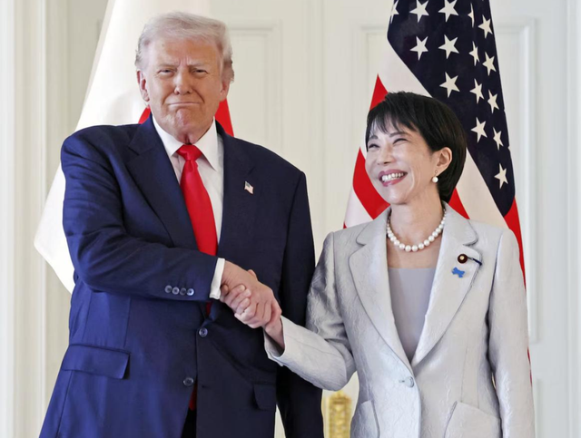 (高市早苗与特朗普在东京会晤,以送礼和幽默拉近关系)