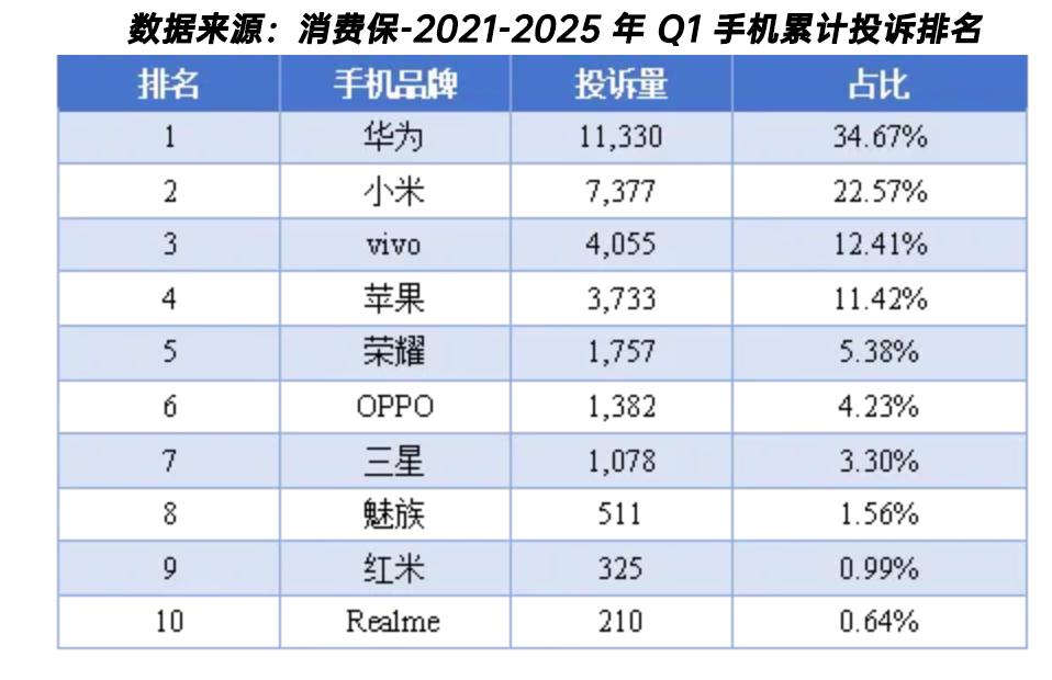 OPPO Find X9 系列热销,还离不开过硬质量与良好口碑的双重加持。据中国电子商会旗下消费保平台统计,2021 年至 2025 年 Q1 期间,平台累计收到手机类投诉 32,680 件。在国内六家主流手机厂商中,OPPO 的投诉量排名最低,与投诉量第一名的差距超过 30%,用数据印证了其产品质量的可靠性。