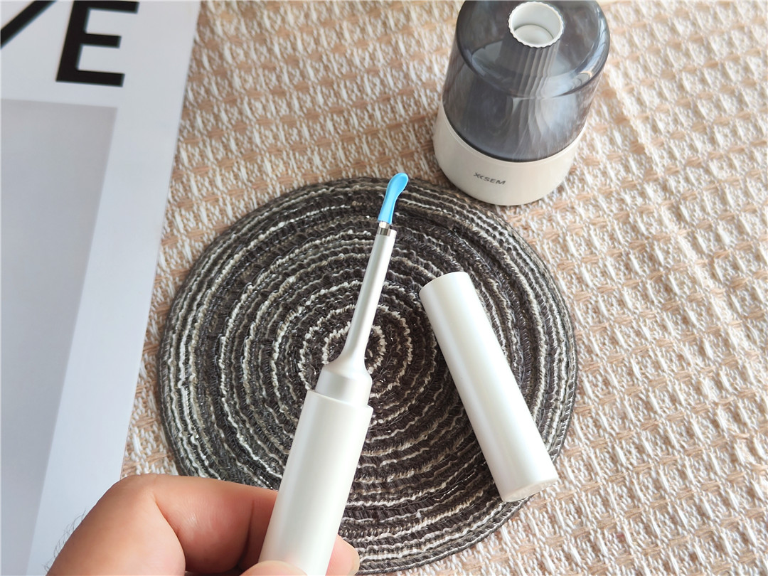 挖耳勺主机造型流畅,符合人体工学设计,握在手中舒适又稳当,,母婴级液态硅胶材质耳勺头触感柔软,宽窄两种规格适配不同耳道类型。机身重量仅28g,长时间握持无疲劳感,整体设计语言简洁专业,更能适应各种使用环境。