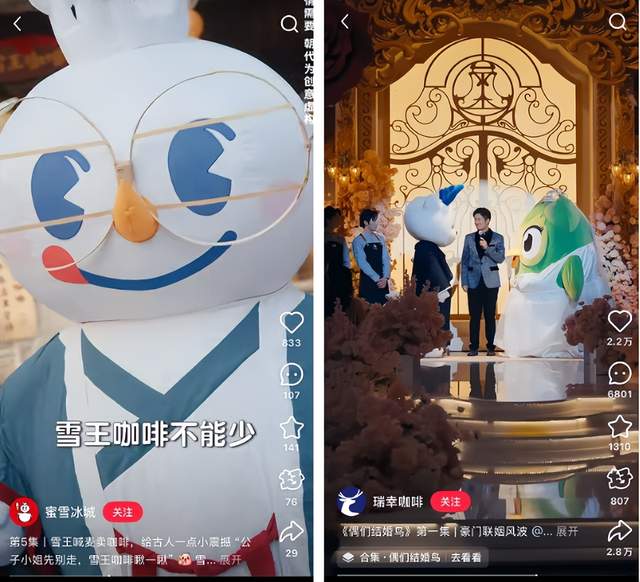 瑞幸咖啡用一部名为《偶们结婚鸟》的短剧联名多邻国、蜜雪冰城推出《雪王在古代卖咖啡》,红米也以《时空合伙人》配合新品发布……与去年相比,近期的短剧营销似乎更轻量、也更聚焦于品牌自身。