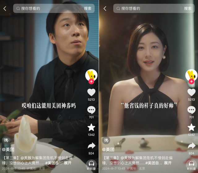 如果和普通短剧同台竞争,“卷”的就是纯粹的内容质量,谁能靠剧情留住用户,谁就赢得了第一步,但对品牌的品效影响还需另说,这也意味着在这一赛道,品牌需要投入更多的制作成本,推动短剧的精细化发展。