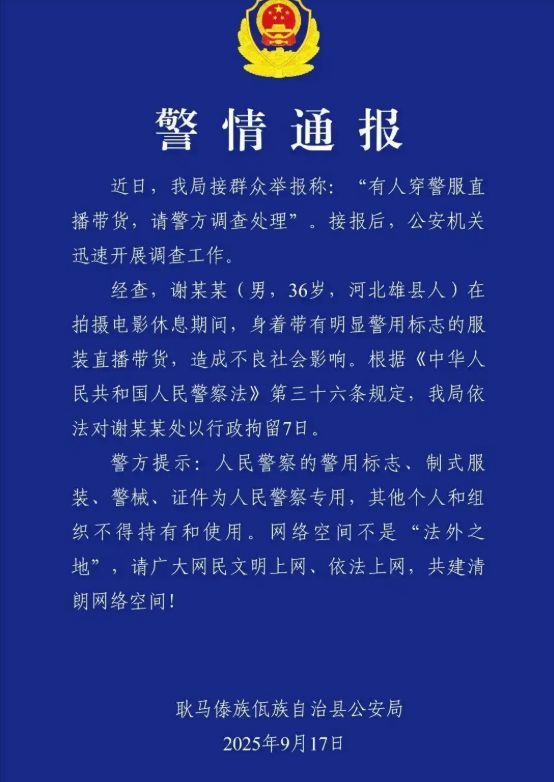 这不,谢孟伟最近就因为直播的时候私自穿警服直播带货,被网友举报!一开始谢孟伟的粉丝还狡辩称那是在拍戏,拍戏的过程中顺便给家人们带带货!直播过程中有网友曾问他警服是否能够随便穿,谢孟伟也承认“肯定不能随便穿”。但因为他觉得拍戏间隙穿警服带带货问题不大,所以才犯下错误。有律师称:穿警服拍戏也是需要报批,何况直播带货了!