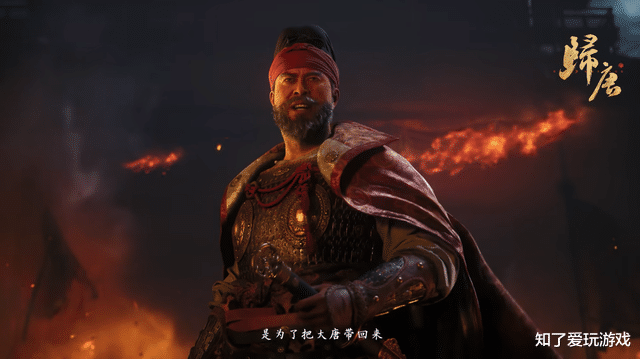 在视频开头那个出现在燃烧的城楼下,大喊着把大唐带回来的男人显然就是归义军领袖张议潮,他的外观参照了《张议潮统军出行图》,他身披明光铠,腰佩唐刀,头戴赤巾,俨然大唐大将穿戴,赤色则象征了这位英雄人物的赤子之心。