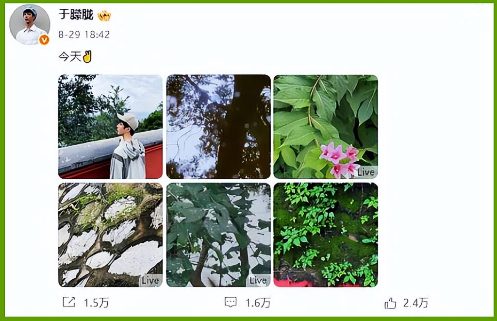 于朦胧最后一次公开露面是在8月29日,当天他分享了几张风景照,并晒出了自己的一张侧面照,照片中的于朦胧虽然一如既往的阳光帅气,但是身体消瘦了很多,尤其是面部瘦得跟之前的他相比简直判若两人。