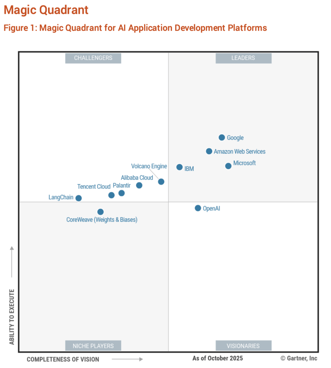 千呼万唤始出来,Gartner发布了针对AI应用开发平台的2025年度全球报告,并启用了「魔力象限」(Magic Quadrant)这么一个经典的分类统计法。
