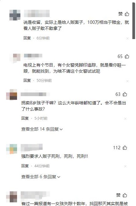 而关于姑姑所说的不追究收留人的责任,一百万酬金也会兑现,其实不少人将其认为是这个酬金就是赎金,所谓的收留人其实也是说的好听点罢了,就是怀疑是人贩子拐走了,希望拿一百万来换人。