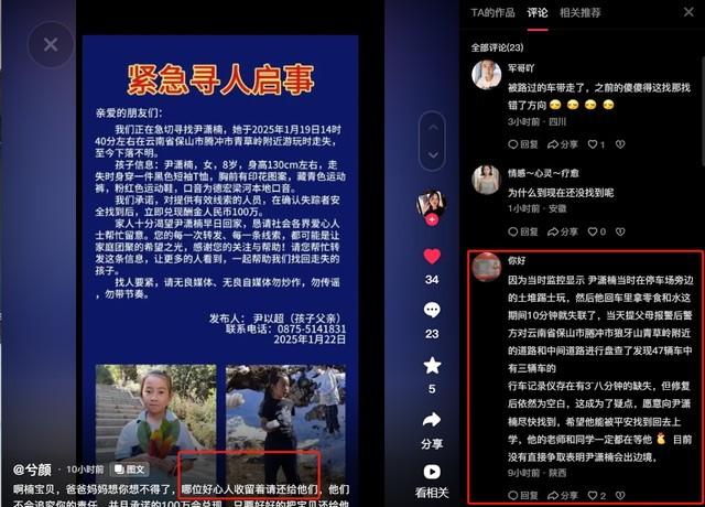 而过去了这么多天,关于尹潇楠的消息却依旧没有什么有效的线索,家人们依旧没有放弃,守着最后的一丝希望,想要找到尹潇楠,而她的姑姑也一直在网络上发布着寻人启事。