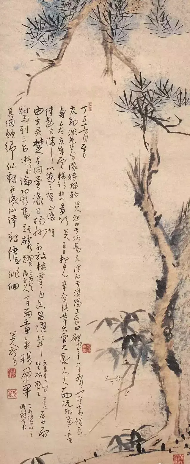 三者组合时,画家非常注重主次、虚实、疏密的安排。或以一为主,另二者为辅;或三者交错,形成丰富的层次感。