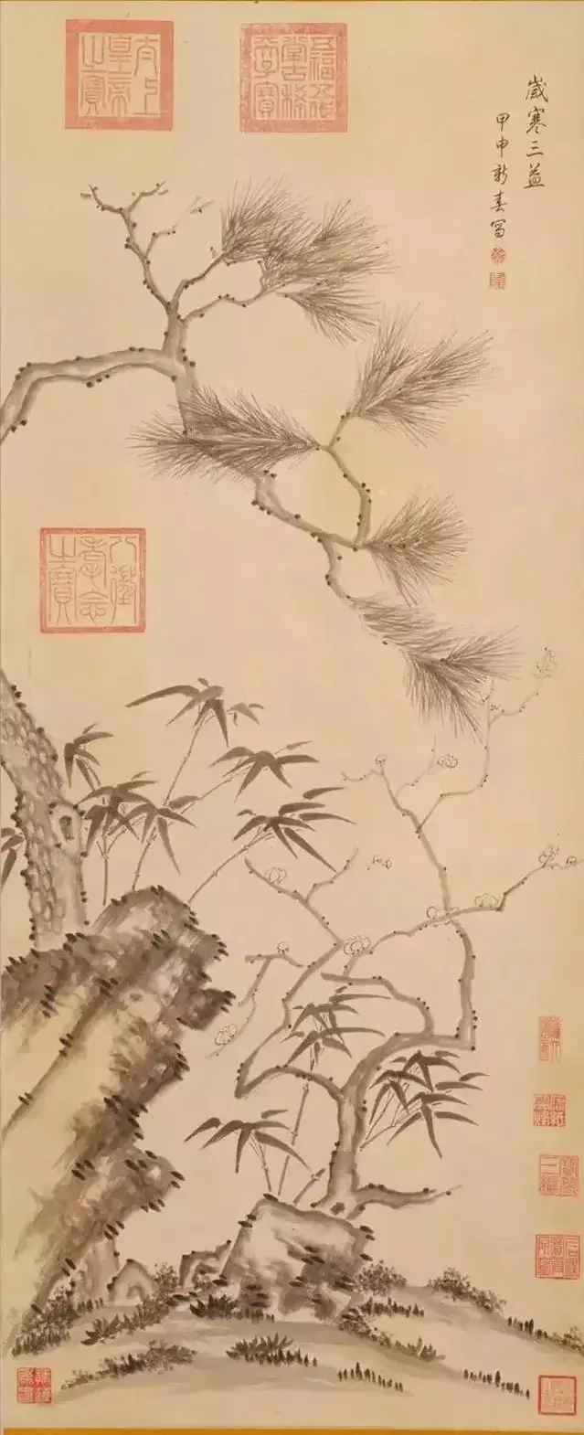 宋代:文人画兴起,“岁寒三友”的精神内涵被大力推崇。赵孟坚等画家常以此题材入画。