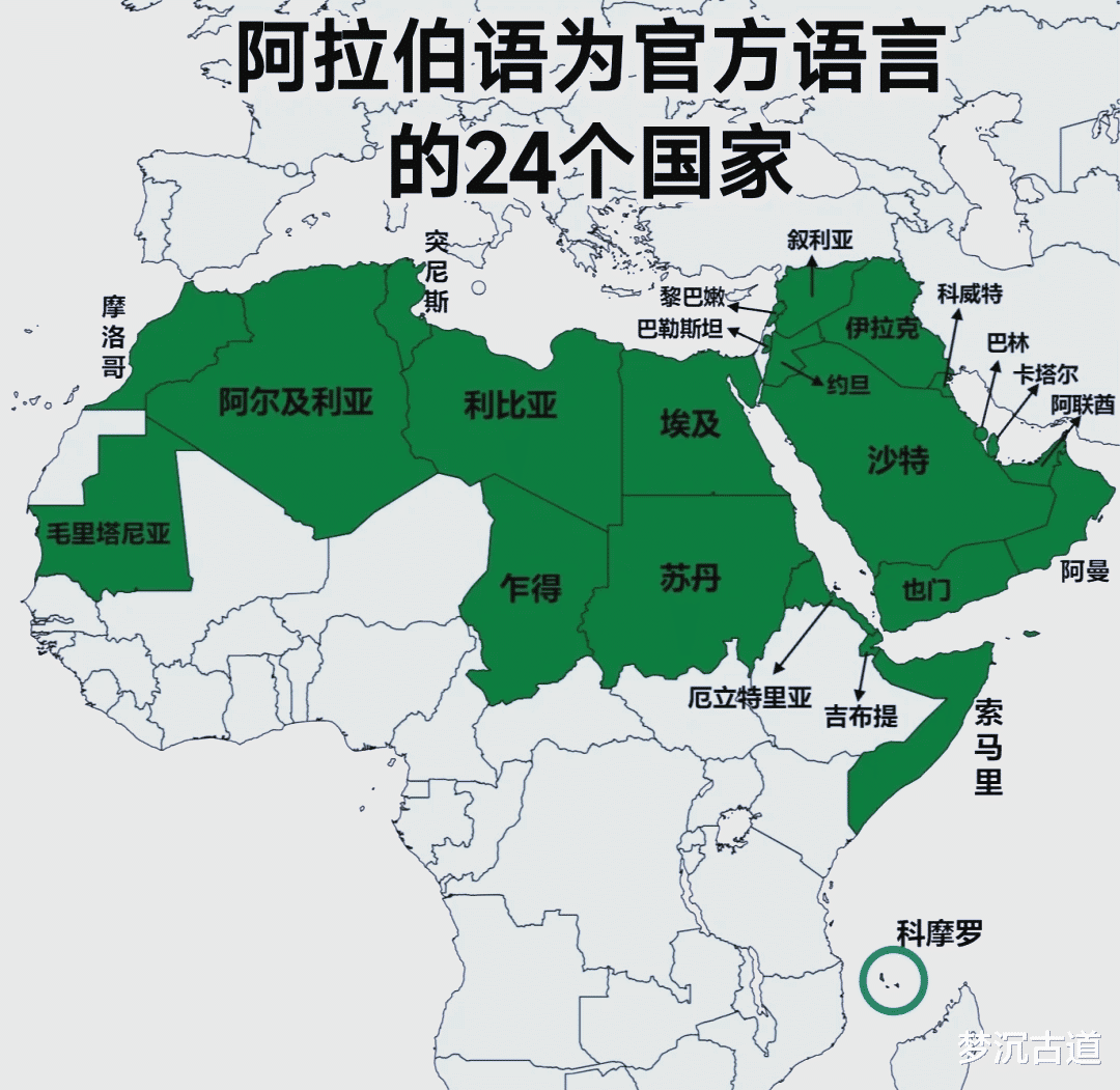 阿拉伯国家共有22个,包括西亚12国(含非正式国家巴勒斯坦)、北非5国还有非洲的毛里塔尼亚、苏丹、索马里、吉布提和科摩罗,以阿拉伯语为官方语言的国家还包括乍得、厄立特里亚,但两个国家均不是阿拉伯国家。西撒哈拉的居民倒是阿拉伯人,但国家地位并没有被承认,不是阿拉伯国家。