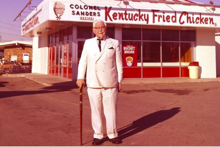 他在盐湖城的老朋友皮特·哈曼(Pete Harman)成全了他。哈曼让山德士在自己的店里试着炸了一顿鸡,结果店员们吃得两眼放光,甚至把盘底的肉汁都舔得干干净净。哈曼当即决定合作,并且极其天才地为这道菜起了一个异域风情的名字——“肯塔基炸鸡”(Kentucky Fried Chicken,简称KFC)。