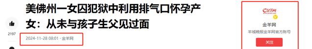 3.金羊网:《美佛州一女囚犯狱中利用排气口怀孕产女:从未与孩子生父见过面》-2024-11-28