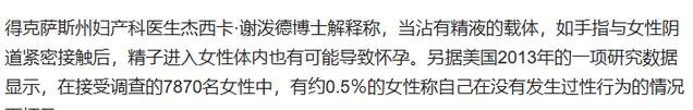 她强调带有男性液体的载体,只要与女性有合适的接触条件,就存在很大机率让女性怀孕。