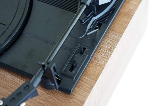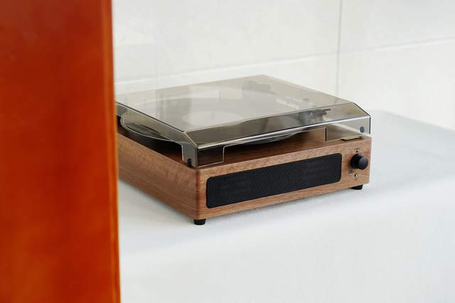 其次,内置了前置放大器,无需外接喇叭,可以直接播放,自带3W*2立体声扬声器,也可直接连接有源音箱或耳机,无需额外配置唱放,极大地方便了入门级玩家的使用。