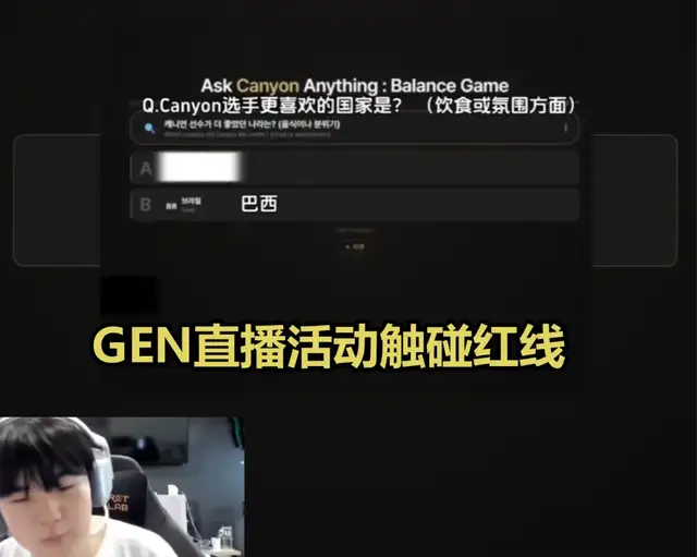 今天咱们来聊聊LCK赛区的一支“惯犯”战队——GEN。为什么说是惯犯?因为这已经是GEN第三次在涉及中国领土的问题上踩红线了。就在近日的官方直播活动中,GEN打野Canyon参与了一个“二选一”趣味问答,题目是“喜欢哪国的食物”,其中竟然将香港列为一个独立国家。消息一出,中国观众直接炸了:GEN你这是第几次了?