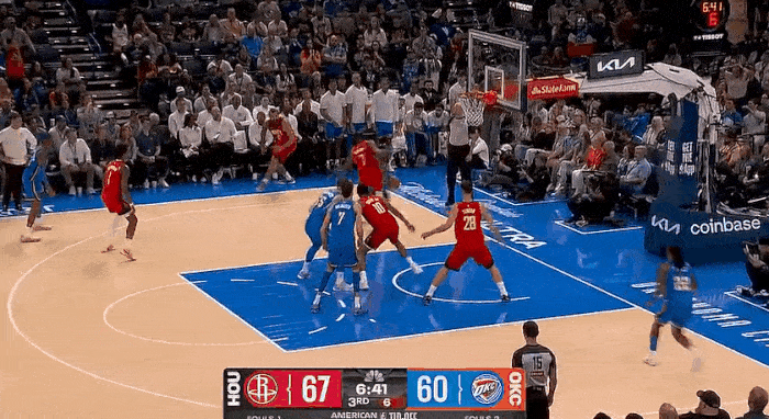 NBA常规赛,火箭对阵雷霆的比赛正在进行中。