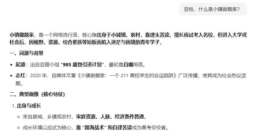 为此,我进行了反思。而且,为了严谨,我又向豆包请教,关于小镇做题家的定义。