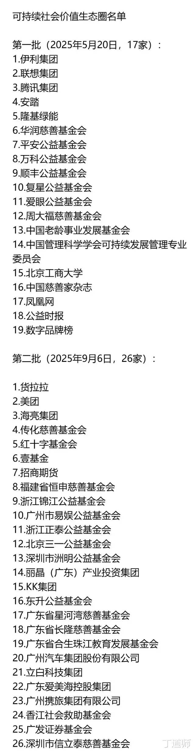 我从主办方那边要到了可持续社会价值生态圈名单。