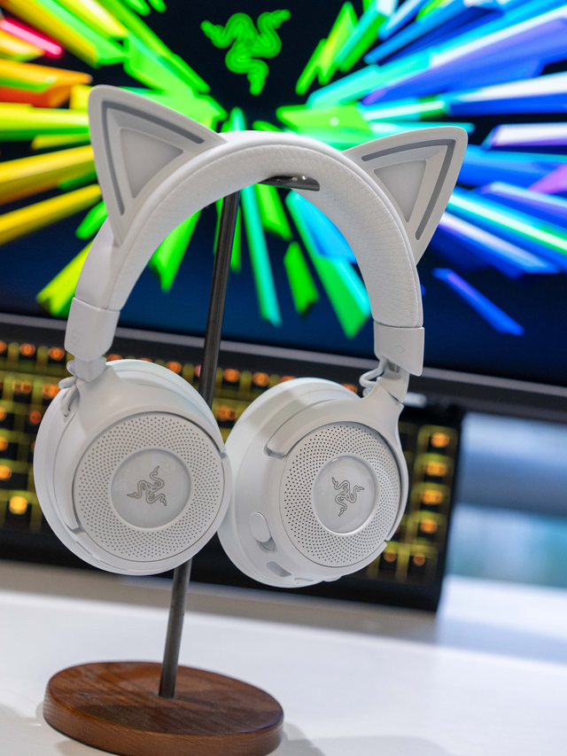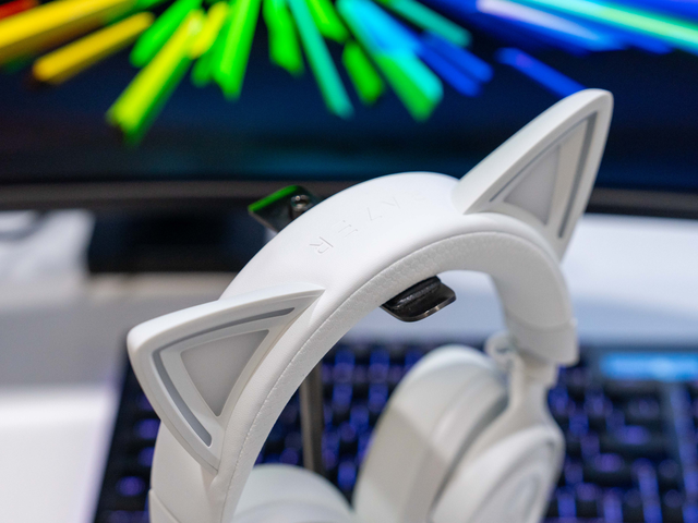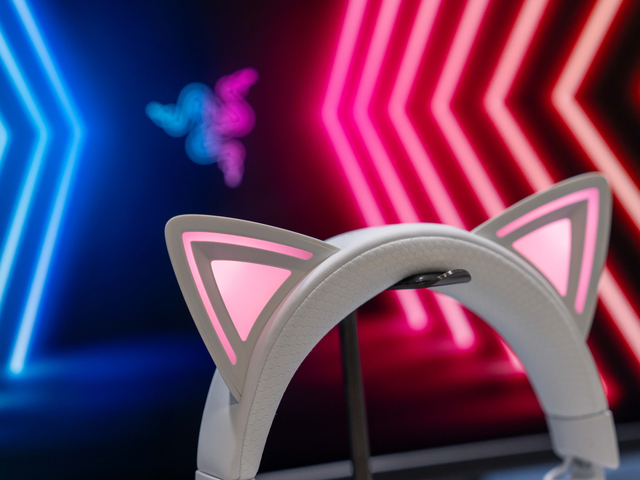 雷蛇北海巨妖萌猫专业版V3支持约1680万种灯光颜色,猫耳和耳罩部分可动态响应实时事件,还可以与雷蛇合作的游戏以及设备同步灯光效果,个性十足。