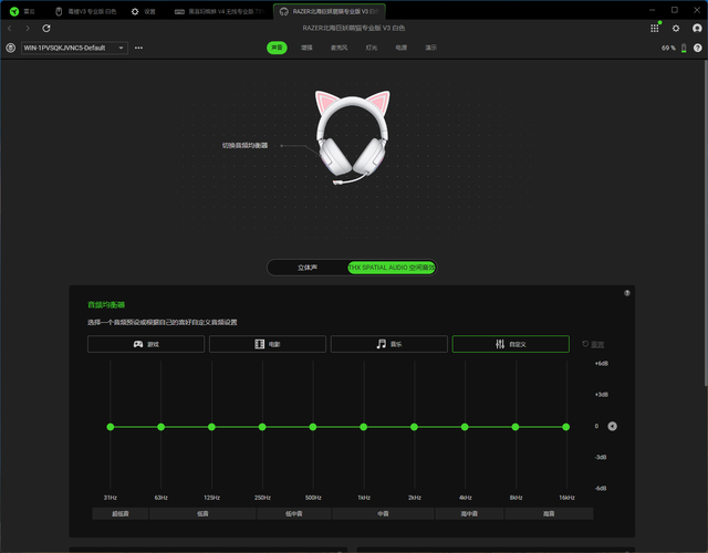 在音效方面,雷蛇北海巨妖萌猫专业版V3配备了40毫米镀钛驱动单元,通过雷蛇的专有设计把驱动单元分为3个部分,使得高音、中音、低音都可以单独调节,从而可以提供更丰富的高音、更有力的低音。