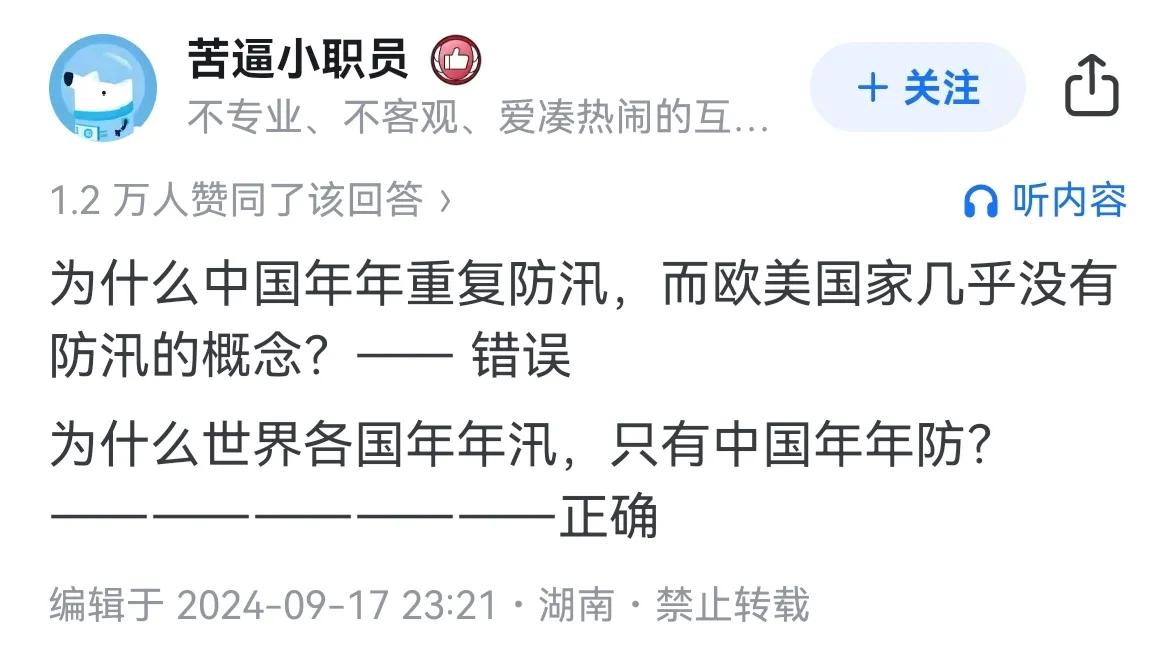 这下子,这位网友应该知道了,为何中国年年防汛,美西方几乎不用防汛的原因了吧!