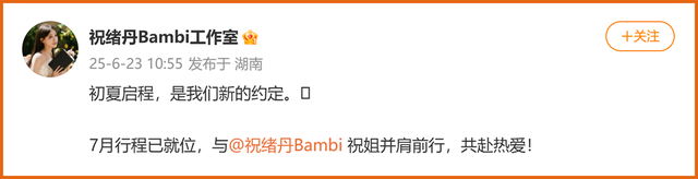 第二条就有玄机了,“7月行程已就位”,说明祝绪丹的后续工作已经安排好了,个人事业发展并未因解约受到太大影响。