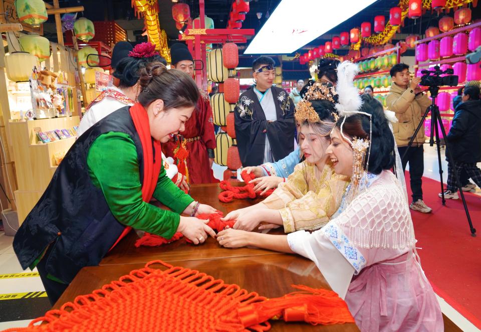 在活动中,市民游客与留学生们体验非遗文化,编中国结时,手指灵巧穿梭,感受传统手工艺的精巧;欣赏秦腔,被那高亢激昂的唱腔和独特韵味所震撼;包饺子时,认真学习包饺子的技巧,体验中国饮食文化的乐趣;写福字时,一笔一划,满怀对中国文化的好奇与喜爱。留学生的参与,更是见证了传统文化跨越国界的魅力与影响力。