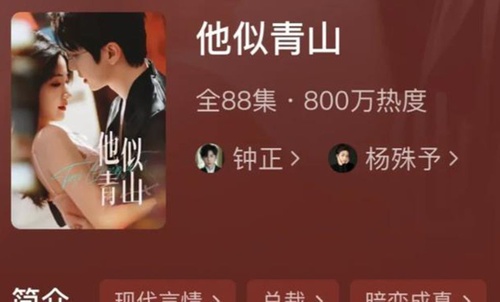 再说说《他似青山》。这剧可是和《青山似玉》同一个IP改编的,它为啥更让人着迷呢?首当其冲的就是它的吻戏。哇塞,那些吻戏拍得真的太欲了,就像火一样,能把观众的心都给点燃了。男主陆沉舟就像是从画里走出来的美男子,温润如玉,尤其是他穿上新中式长衫的时候,那造型简直了,直接封神有没有。女主苏棠也是娇俏灵动得像个小仙女一样。这两人只要同框,就像是有糖果一样,到处都是粉红泡泡,发糖发个不停。像雨中拥吻的时候,那种浪漫的氛围,感觉整个世界都变得唯美起来了;书房壁咚的时候,男主那帅气的姿势和女主娇羞的表情,真的是能把人的心都融化了;竹林定情的时候,周围的景色都像是给他们的爱情做了最美的背景。网友们看到这些吻戏的时候都说“这剧的吻戏不会是专门去培训班学的吧,怎么拍得这么好!”而且这剧情的细节处理得特别到位,男主暗恋日记曝光的时候,那些伏笔就像一颗颗闪亮的星星,每一个细节里都藏着甜甜的爱情,CP粉们都激动得不行,直呼“这剧三搭都不够看啊,求赶紧锁死!”