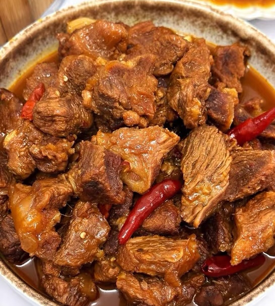 选一块上好的牛腱子肉,这可是酱牛肉成功的关键哦!牛腱子肉肉质紧实,有筋有肉,炖煮后口感层次丰富。把牛肉切成大块,放入清水中浸泡2 - 3小时,中间换几次水,这样可以泡出牛肉里的血水,减少腥味。泡好的牛肉冷水下锅,加入姜片、料酒,大火煮开后撇去浮沫,煮个5分钟左右捞出来,用温水冲洗干净。这一步就像给牛肉洗了个干净的澡,让它以最佳状态迎接接下来的美味变身。接下来准备卤料,八角、桂皮、香叶、草果、花椒、干辣椒等香料一样都不能少,它们就像一群神奇的魔法师,能为牛肉赋予独特的香气。把香料放入纱布袋中,扎紧口袋。锅中重新加水,放入牛肉、卤料包、生抽、老抽、冰糖、盐和葱段,大火煮开后转小火慢炖。炖煮的时间很关键,一般1.5 - 2小时左右,直到牛肉变得软烂,用筷子能轻松插进去。这时候别急着把牛肉捞出来,让它在卤汁里浸泡几个小时,甚至过夜,这样牛肉会更加入味,就像给牛肉做了一场深度SPA。吃的时候把牛肉切成薄片,整齐地码在盘子里,再淋上一些卤汁,哇,一份醇厚浓香的酱牛肉就大功告成啦!