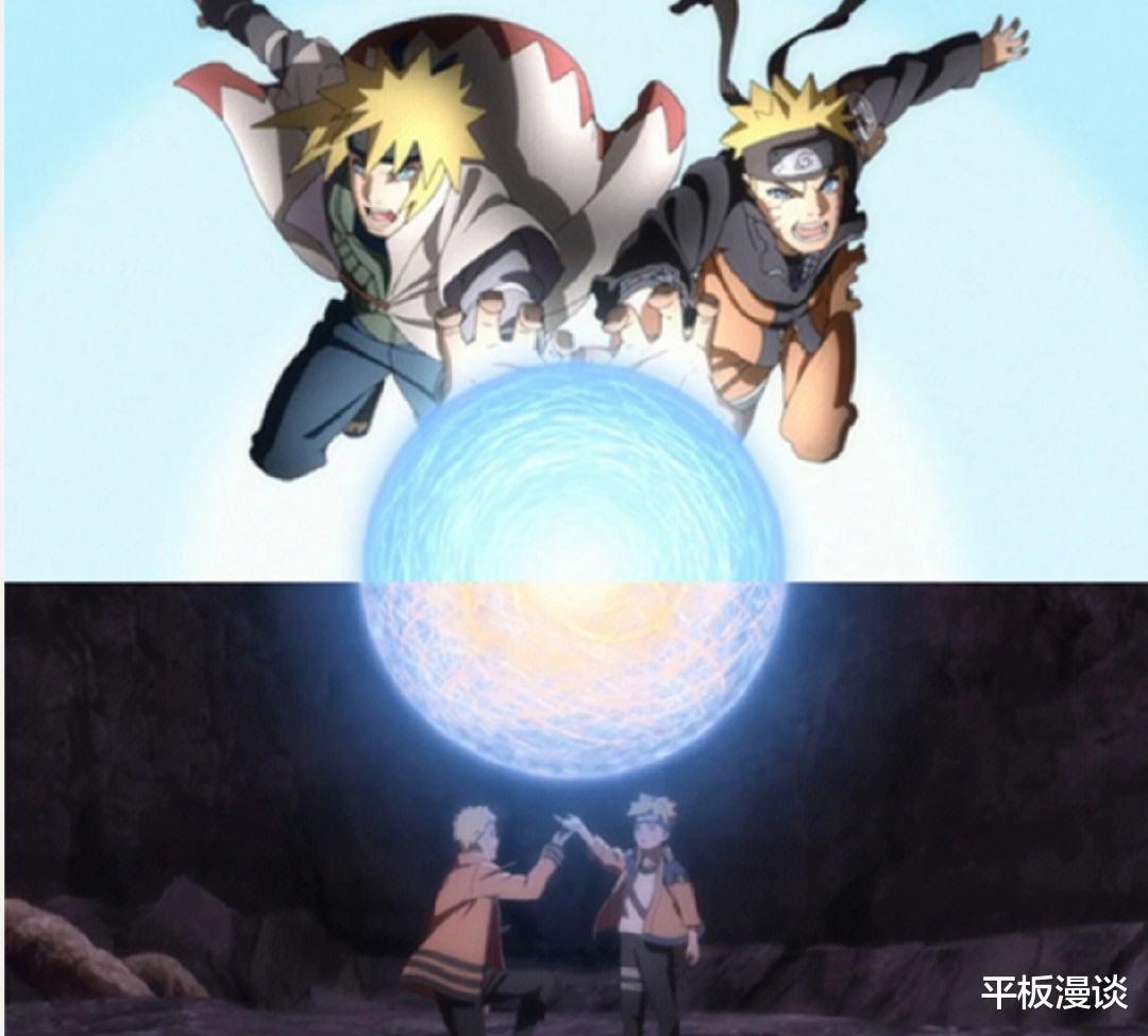 而后在忍者大战中,父子两还曾经携手共同使用过螺旋丸。