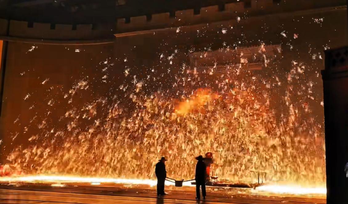 这个延续了500多年的绝技,匠人们将1600多度的铁水泼洒向城墙,瞬间炸开,如烟花般璀璨,绚丽夺目,那比烟花可震撼的可不止100倍。