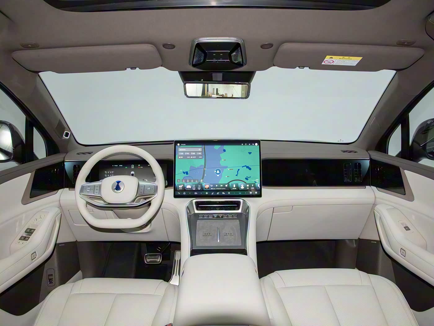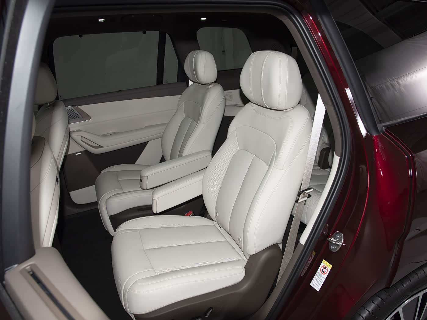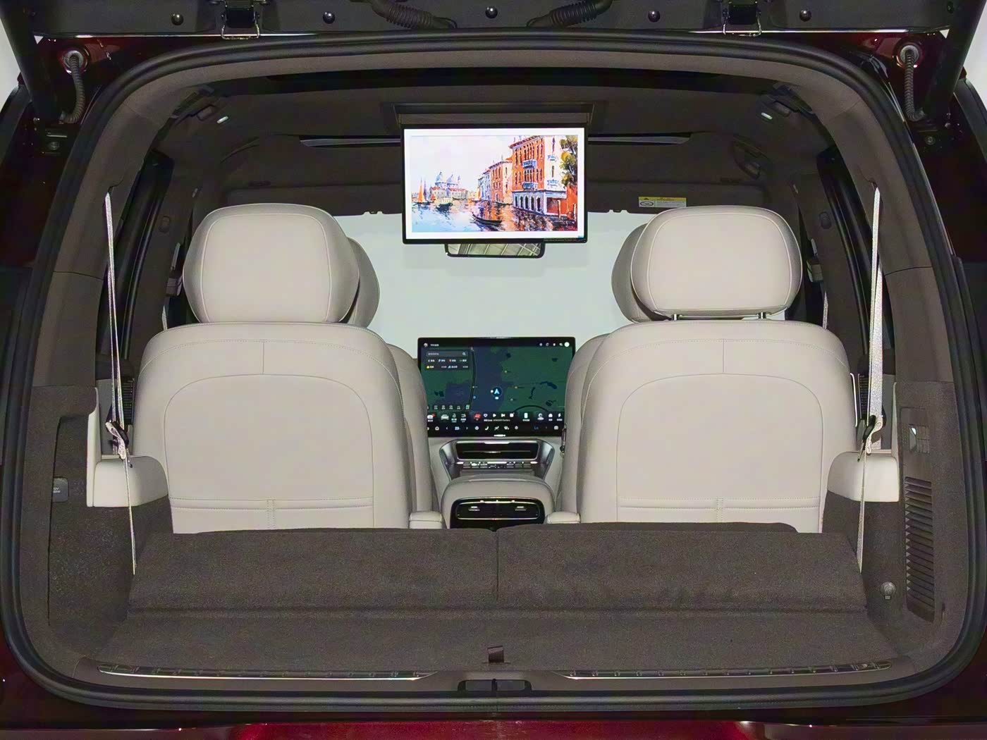 进入车内,内饰采用对称式布局,风格简洁大气。配备多屏互联系统,包括13.2英寸仪表屏、17.3英寸中控屏、副驾拓展屏及后座舱娱乐屏。座椅采用2+2+2六座布局,前排和二排均配备电动调节、通风加热功能,副驾更设有零重力座椅。第三排座椅支持前后电动调节和加热功能,全车还配备智能冷暖双冰箱、双小桌板等实用配置,通过灵活的座椅组合可实现多种空间场景。