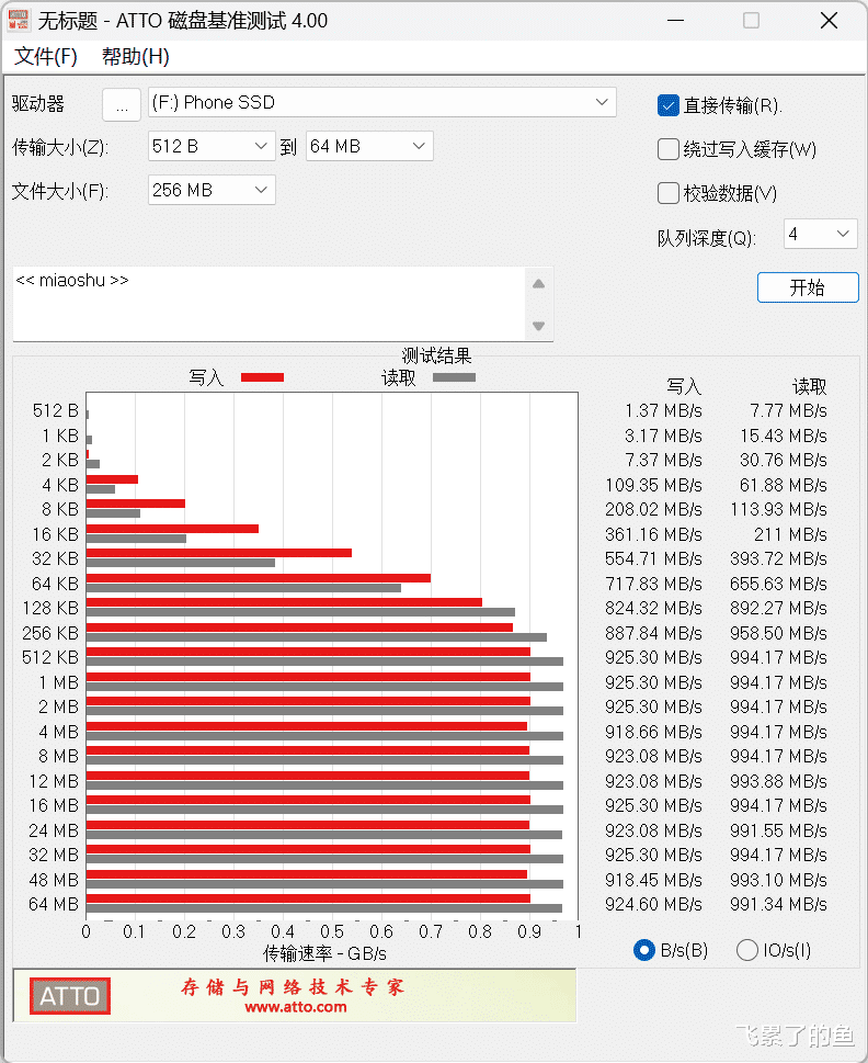 ATTO连续读写测试,连续顺序读写速度均稳定在 MB/s和 MB/s左右,没有因连续存取大量数据而出现不稳定“掉速”的情况。如果有连续录制高质量视频需求的话,这个特质就很必要了!