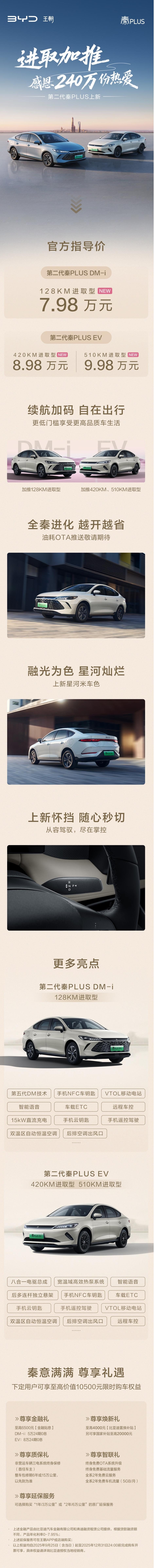 9月25日第二代秦PLUS加推进取型,其中DM-i加推128KM进取型,一次充电,就可以满足大部分用户一周通勤的需求;同时还推出了EV 420KM进取型和510KM进取型,这两款纯电均采用前麦弗逊+后多连杆独立悬架,而且还上新了怀挡设计。