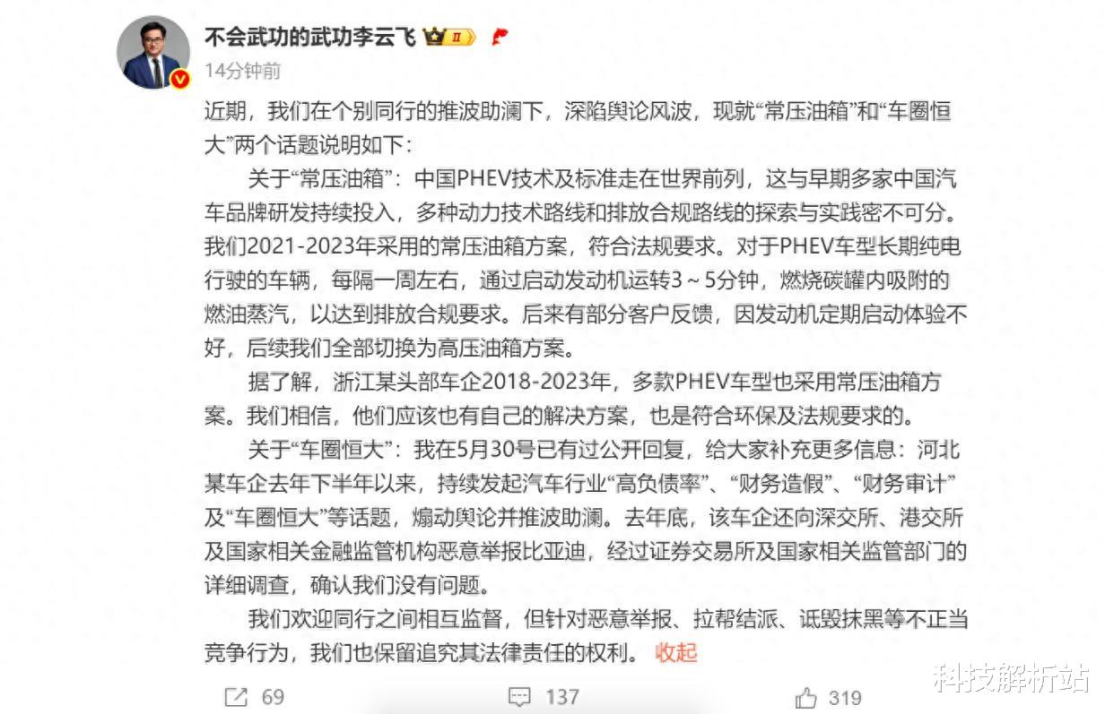如今内卷已经从价格战卷到舆论战。已经炒作很久的常压油箱最近又被拿出来炒冷饭,网友都已经“见怪不怪”了。