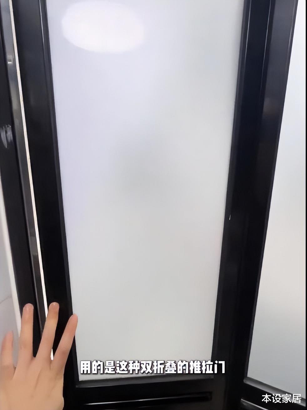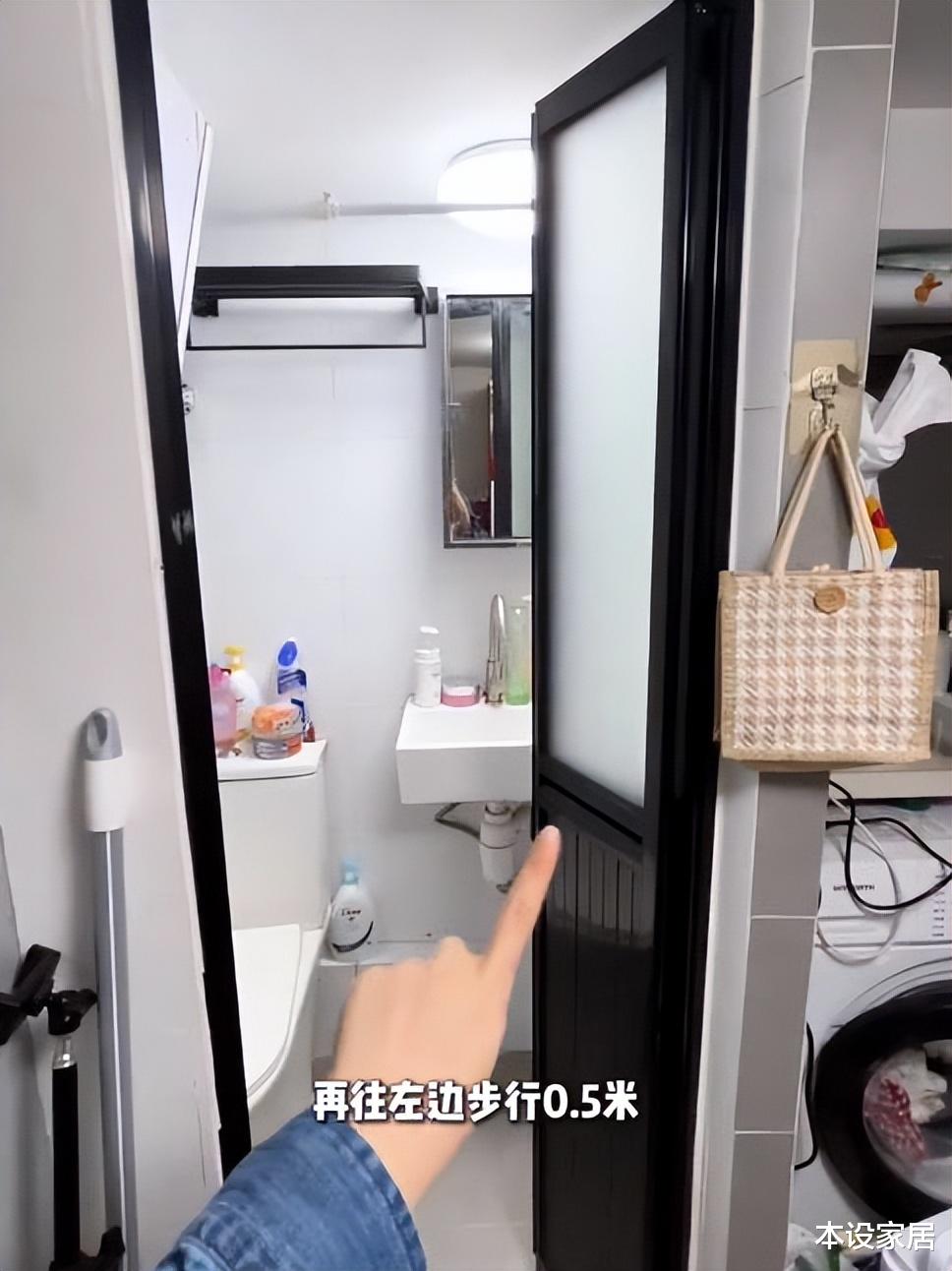 灶台的左边是1㎡的卫生间,使用的是双折叠的推拉门,最省空间了。