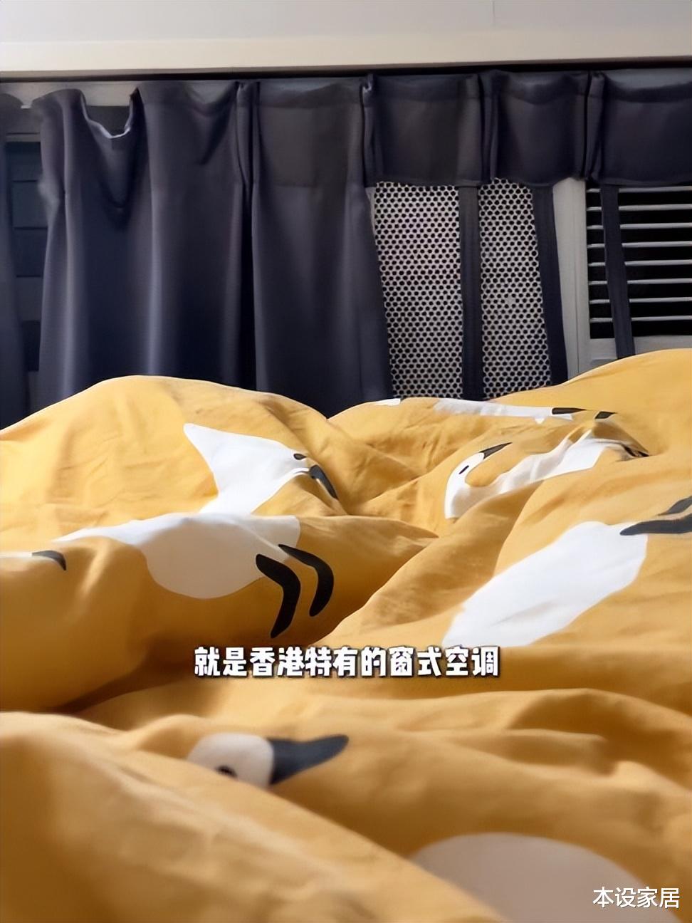 卧室的层高约80公分,只能爬着进去,放置一张1.2米宽的床垫,铺上亮色床品,配置了抽湿机和小风扇,还有香港特有的窗式空间,该有的都有。