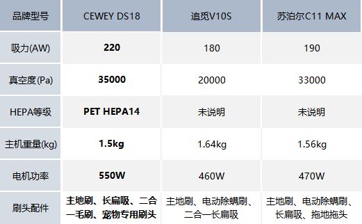 为了让你更直观了解这三款吸尘器哪款好,下面先放一张三款吸尘器的参数对比图,方便大家对照。